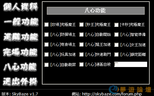 本帖最後由 egg84828 於 2013-1-3 18:35 編輯 輔助功能甚多.. 點此入論壇 輔助版主提供免費輔助.. 只希望論壇可以多一點人聊天談是非.. 讓論壇成為一個聊天論壇.. 所以輔助需要一些積分才能下載.. 賺積
