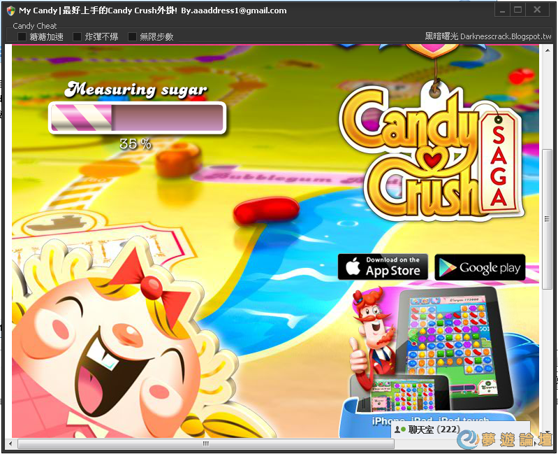replyreload += ',' + 1646888; 輔助功能有三個:(1)糖糖加速 (2)炸彈不爆 (3)無限步數 (1)糖糖加速:開啟後將會省略一切糖果的爆炸、掉落動畫,加速遊戲節奏. (2)炸彈不爆:遇到有炸彈的關卡後開啟,所有炸彈的次數