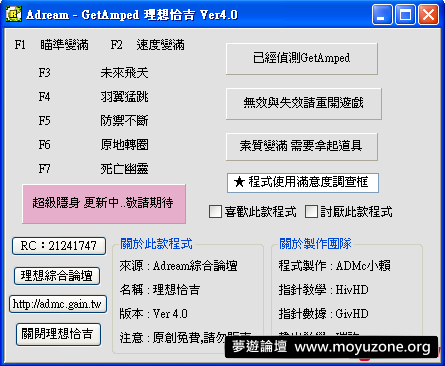 replyreload += ',' + 1695229;程式名稱: 理想恰吉V4.0 [9/18最新] 程式選寫: ADMc小賴 聯絡辦法: RC 21241747 注意事項: 原創免費 絕對不收錢 請勿販賣 歡迎轉發 功能介紹: 程式內清楚說明! 開啟方法: 滑鼠點