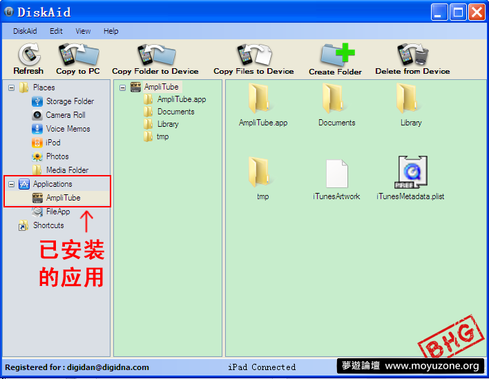 DiskAid 是一款有 DiGiDAN 開發的軟件,支持 WIN 下的完整軟件目錄訪問,包括軟件的 Documents目錄, Library目錄, 甚至 .app目錄。如果你還在使用 DiskAid,broad 建議你下載 iTools 嘗試一下。iTools 的最近更新也