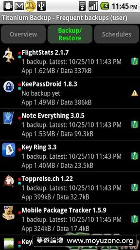 《鈦備份 Titanium Backup》是目前最為強悍的程序和系統備份工具,需ROOT許可權運行。鈦元素的特點暗示了本備份軟體的特性:有強大的壓縮備份性能,使備份產物容量小但是卻穩固而強大。但是強大的壓縮性有賴於高性能