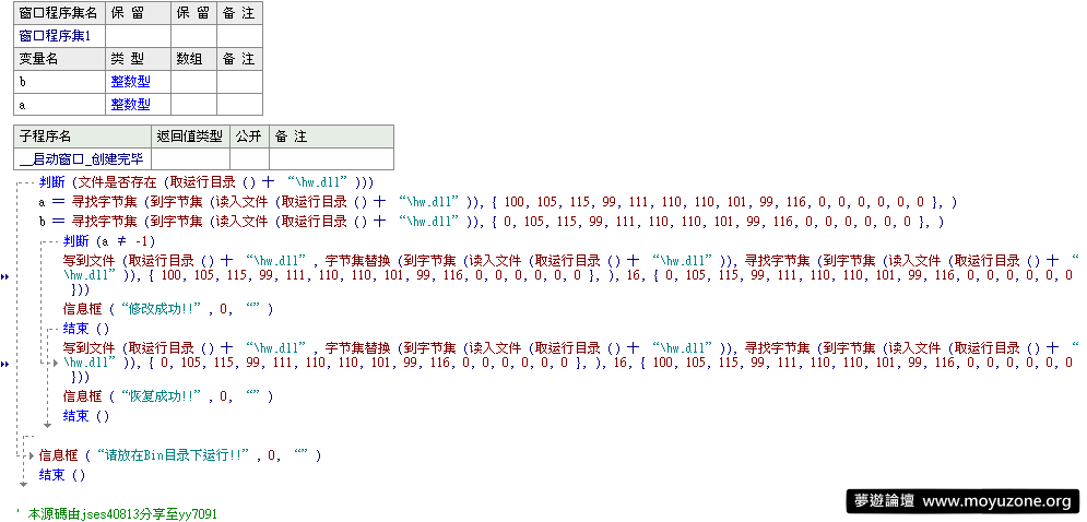 replyreload += ',' + 1710759;說明:由於無聊所以寫一寫分享,有興趣可以下載看看,非常簡單的幾行代碼寫出來的,無任何模塊 使用方法:編譯後放在Bin目錄下運行,運行第一次修改,運行第二次恢復 所有站內附件