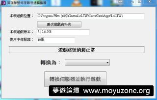 replyreload += ',' + 1716257;這是一款快速轉換登入伺服器的程式, 使用的都是Garena發佈中文介面的LOL主程式, 登入其他伺服器皆""無須重新安裝主程式"", 缺點是無法登入目前版本不同的伺服器。 台 SEA服
