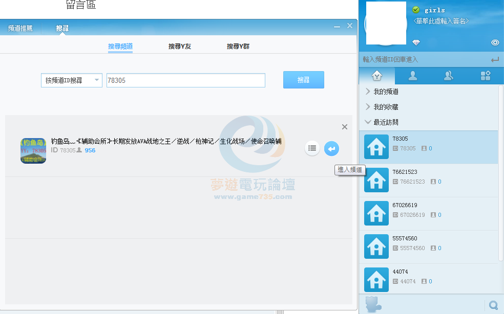本文章最後由 SheepKingCN 於 2014-2-11 04:51 編輯 過偵測請參考http://www.game735.com/thread-147148-1-1.html複製代碼-------------------------------------------------------------- 首先,用YY進入「搜尋