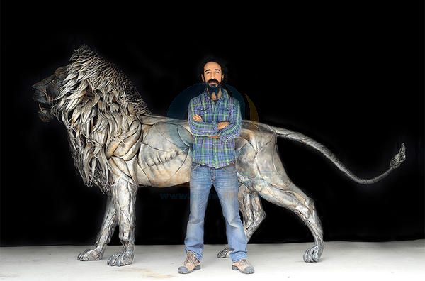 四千片金屬組合而成的鐵皮獅王