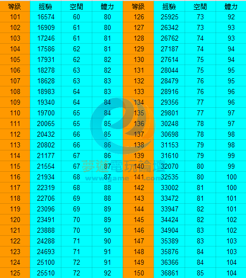 100等以下就不多打了 因為不用很久就可以超過100等了 以下為另外截圖(沒有截的非常工整請見諒)