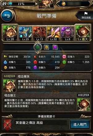 1. 選關、選隊友(滿等)、記住隊友三圍數值(生命,攻擊,回復),進入戰鬥。