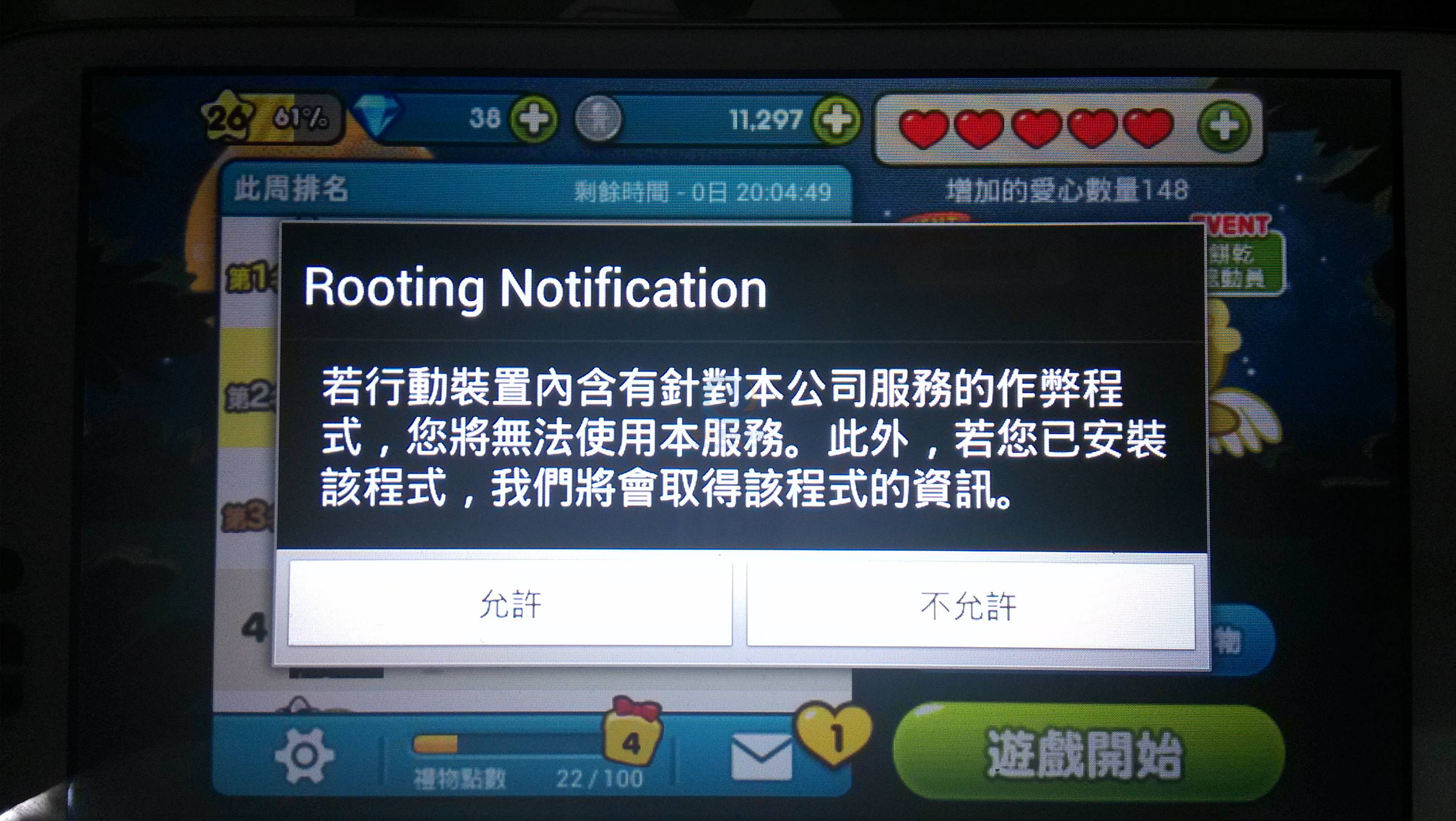 手機ROOT後LINE 跑跑薑餅人進遊戲會顯示異常如圖,請教高手,有解嗎?