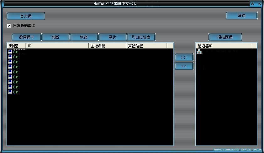 replyreload += ',' + 94796; 本帖最後由 kevin3659 於 2010-12-10 01:16 編輯 【軟體名稱】NetCut v2.08 內網斷線器繁體中文版 【軟體版本】 v2.08 【語言界面】 繁體中文 【檔案大小】 2.5MB 【作業系統】 xp/vi