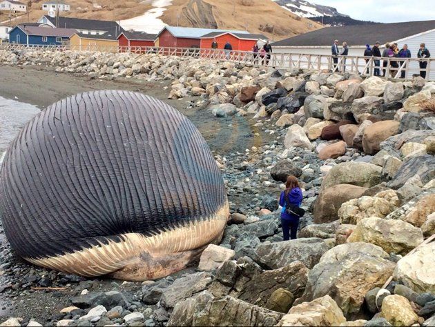 近日一條藍鯨屍體被沖上加拿大紐芬蘭島沿海小鎮石灘,這隻長約25米的藍鯨屍體,由於體內充滿甲烷,頭部膨脹成了超大氣球,並且已經開始發臭,可能隨時爆炸。屍體腐爛後的腥臭味,也蔓延到整個小鎮,600名居民難以忍