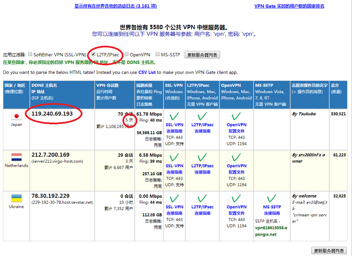 replyreload += ',' + 1837353;1.連結vpn代理伺服列表網站VPN GATE 選取L2TP/IPsec 並更新列表,記好要跳的國家ip位置,盡量挑運行時間較長的(3天以上) 所有站內附件皆會附上安全掃描報告請會員查看純淨度百分比