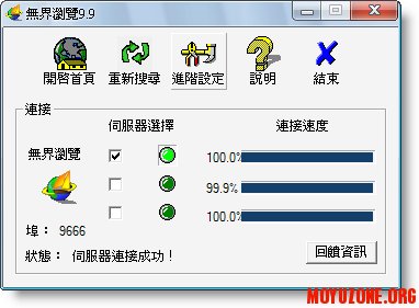 【軟體名稱】:無界瀏覽 9.9 & 自由門 6.1繁體中文版[最新版!突破網管的限制工具] 【軟體語言】:繁體中文 【檔案格式】:RAR 【檔案大小】:1.50MB 【放置空間】:HOTFILE 【軟體說明】: 增強了突