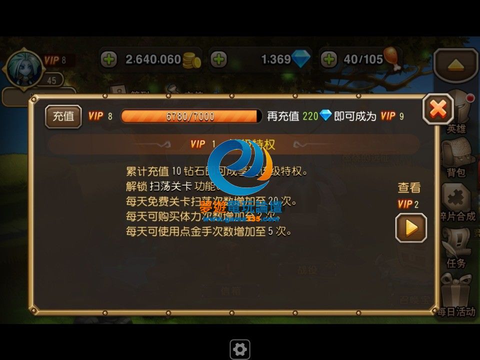 replyreload += ',' + 1892372;《刀塔傳奇》vip等級充值到多少才算最划算的呢,並不是你直接衝到vip滿級,你就是最牛B的,而是得看vip有哪些功能,這也得做個性價比,這次小編來給大家說下《刀塔傳奇》vip等級充值到