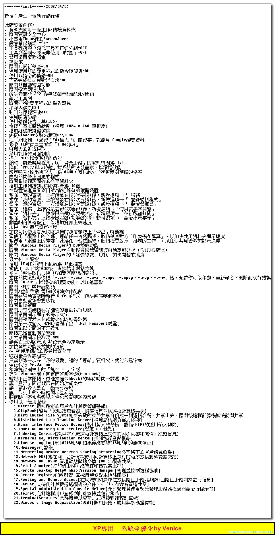 replyreload += ',' + 129967; 本帖最後由 奇奈 於 2011-1-10 01:16 編輯 【檔案名稱】: 系統優化&清理 Venice’s One Touch 【檔案大小】: 50.50 KB 【下載點】: 所有站內附件皆會附上安全掃描報告請會員查看純