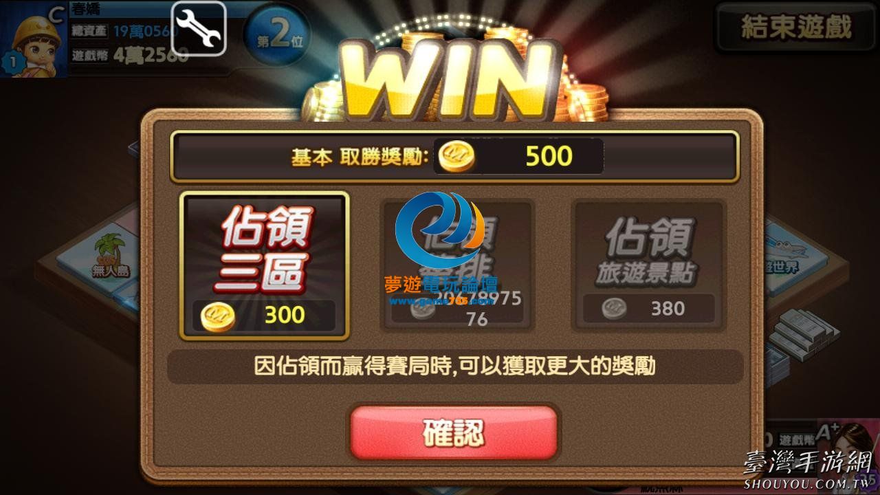replyreload += ',' + 1903020; 要和電腦1p1佔領整排真的有難度,幾乎都是3區佔領或破產結束... 後來發現金幣其實也可以洗鑽, 方法就是用金幣狂抽道具>強化道具>存禮物點數>20點可以換1鑰匙 5鑰匙可以開一個超值