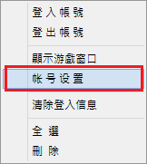 replyreload += ',' + 1907161;Insert鍵開始運行 Delete鍵停止運行 更改配置: 登入遊戲後,右鍵帳號列表中的帳號,選擇帳號設置。 所有