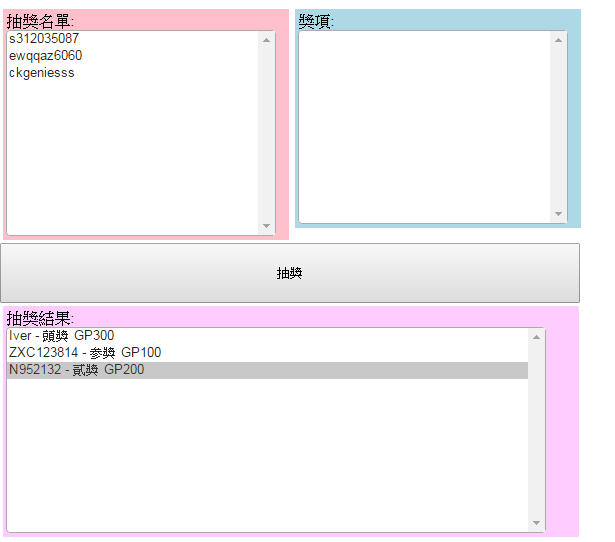 2014/12/02 夢遊App 抽點卡(GP)活動 --- 得獎名單公布 恭喜以下會員得獎 Iver - 頭獎 GP300 ZXC123814 - 参獎 GP100 N952132 - 貳獎 GP200 得獎者 -- 獎