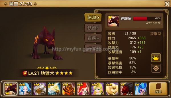 【初始魔靈】 水仙女能進行單體補血,本身的防禦成長率較高,作為隊長還可以降低20%異常出現的機率。強化攻擊力之後可提升仙女的補血量、強化防禦力成為超坦奶媽,前期戰術實用性一流。火狗雖然只有二星,但是攻