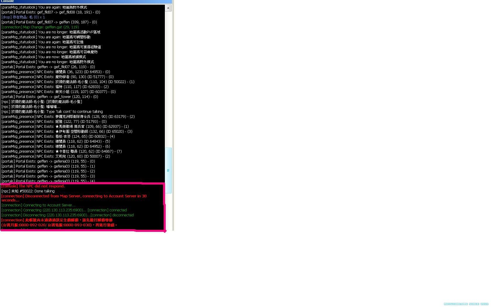 補品用完..... 我的人物點存吉芬 回去取倉... 可是回去取倉跟卡普拉說話就會斷線... 我的程式哪邊需要修改....