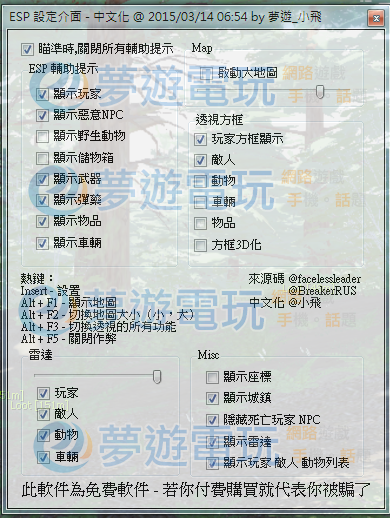 replyreload += ',' + 1937698;【情報】3/14 H1Z1 ESP更新 【新增顯示開關,雷達開關,介面】【修復 車輛距離】 重要:此H1Z1輔助,僅有以上標註之輔助介面俗稱ESP,並無任何變態功能。例如:飛天 無敵 穿牆 等..
