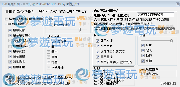 replyreload += ',' + 1939601; 【3/18 三版】小飛H1Z1 ESP 中文版【優化卡頓.血量.自瞄】- 中午最新 本次修正以上問題 使用上若出現卡頓,請將血量% 的勾勾取消試試。 自瞄等相關問題歡迎到此帖參與討論 討論