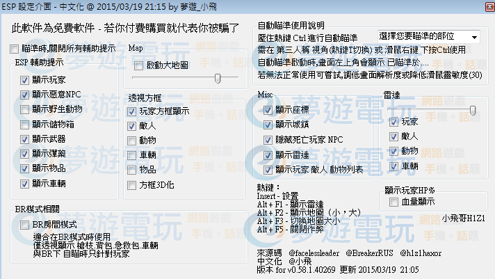 本文章最後由 a0923303077 於 2015-3-24 01:32 編輯 您好 我開啟ESP後 X Y Z軸 那些數字 還有 自動瞄準頭部(胸部、蹲姿) 都是是出現在 右上的地方 請問要如何讓它出現在左下 而且看不到其他人的名子還有血量 |