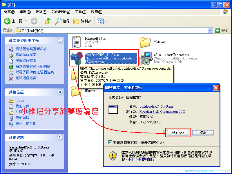 replyreload += ',' + 145619; 本帖最後由 小維尼 於 2011-1-17 23:44 編輯 【軟體名稱】:VistaBootPro 【軟體分類】:開啟雙系統 【軟體語言】:英文 【檔案大小】:1.14MB(壓縮後) 【解壓密碼】:無 【軟體介紹