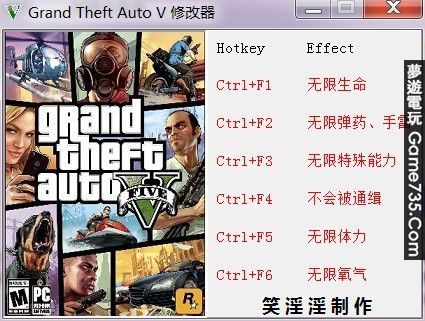 replyreload += ',' + 1952320; 基於機器碼定位尋址,理論上是支持各種 及升級補丁! 先進遊戲,然後切換出來運行修改器按相應熱鍵,再切換迴游戲! 修改器對應遊戲主進程GTA5.exe,如果遊戲主程序名不是這個的