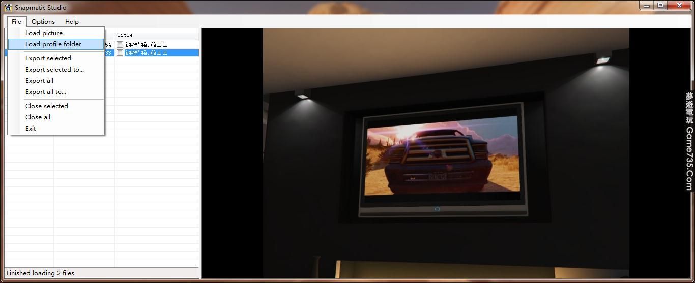 replyreload += ',' + 1955258; 打開方法: 選擇File菜單在選擇Load profile folder這個選項(是GTA V 存檔裡的默認位置) 就會看到相片。 在列表右擊可以,在File菜單也可以 選擇Export all to.... 選擇目錄就