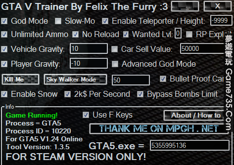 replyreload += ',' + 1955829; 先開遊戲進去後再切換出來打開這個修改器 NOTAHACKTOOL V1.35修改器刷錢刷等級方法 先開GTA5,進單機模式,然後選進入線上模式,選私人好友戰局,進去你自己房子後,切換回桌面