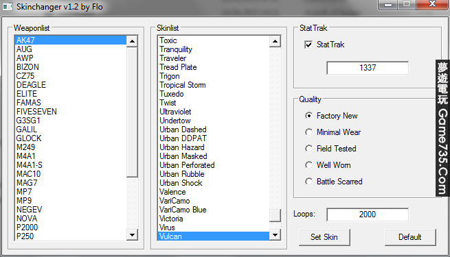 開啟CSGO後 也開啟此修改器 選擇你要修改的槍枝 右側 選擇欲更改的外觀造型 中間 按下 set ..... 完成 若欲恢復原有造型 請按 Default .video-container { position: relative; p