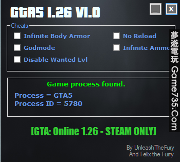 replyreload += ',' + 1957461;GTAV 線上作弊器 V1.0 FOR 1.26線上版 無敵/防彈無限/無限子彈/關閉通緝/ 啟動遊戲後 開啟作弊器 所有站內附件皆會附上安全掃描報告請會員查看純淨度百分比後判斷使用(adsbygo
