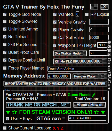 replyreload += ',' + 1957606;5/1 截至目前最完整的GTA5 線上作弊 修改器 GTAV Online Trainer v1.5 無敵 洗錢2000/每秒 無通緝 洗經驗值重力調整 鎖定玩家追蹤 無限子彈 自己改汽車銷售金額 飛天 移