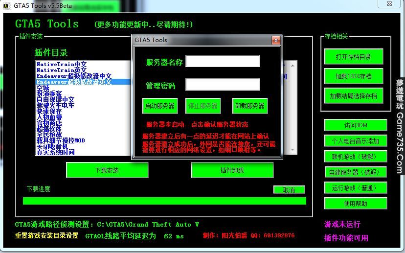replyreload += ',' + 1960716; 5月10日1:37更新內容(今天應該不會再更新版本啦,今天過生日出去爽一天,明天繼續修正程序) 1、集成了FiveM自建聯機服務器補丁,建立服務器完全傻瓜化。 2、修正一個測速Bug.