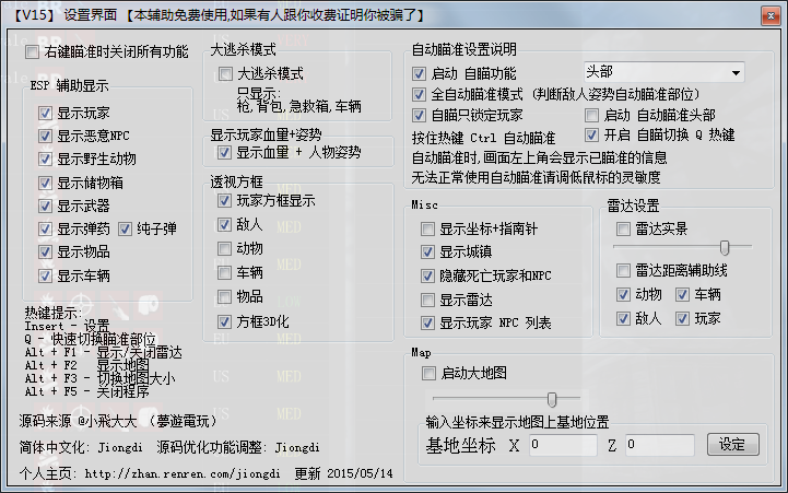 小飛 發表於 2015-5-14 12:57 玩H1Z1很久,比如我增加了一些小地方坐標,很多新手不知道。我還有很多想法,比如自瞄的白名單。 |