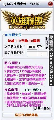 replyreload += ',' + 1963961;程式截圖:(因為懶得重新拍圖,所以放舊圖) 程式名稱:LOL掛機走位Ver.03(前台版) 本站作者:米粒 掃毒報告:觀看 偵測率: 0 /