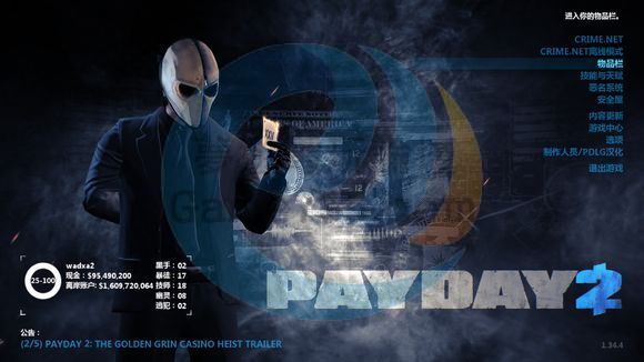 解壓文件,將PDLG-CHS文件夾複製到遊戲目錄PAYDAY 2/assets/mod_overrides 文件夾下即可
