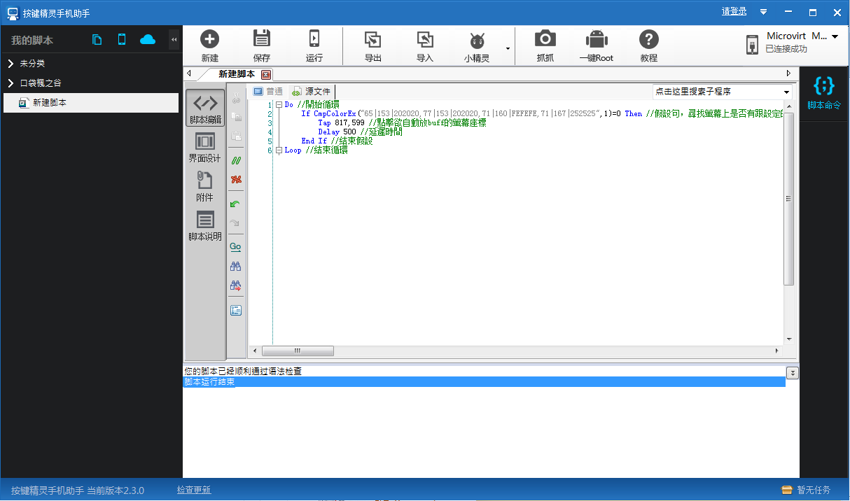 replyreload += ',' + 1984481;[copy]f2771455(~清新水藍~) 超連 [/copy] 在這邊也分享一下我的腳本,原本是用電腦版按鍵精靈在掛,但實在是不知道怎麼解決用後台找色去比對然後執行步驟這方面的問題(不知道為什麼