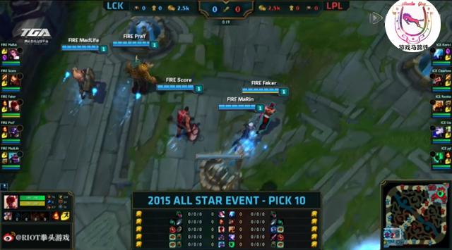 LOL全明星第二場比賽是中國全明星和韓國全明星的對決,而他們的英雄都是提前被票選好的。韓國方面,Faker使用盲僧中單,諾手打野,牛頭ADC,Madlife布隆輔助,Marin拿到了自己最擅長的劍姬。中國全明星方面,koro1冰