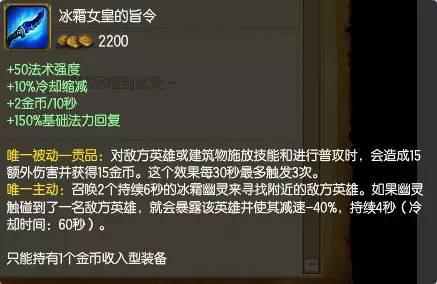 繼羊刀之後,「冰霜女皇的指令」再度火熱,而這件裝備的最大獲益者便是奇葩AP輔助,女王的指令搭配「雷霆領主的法令」,這些輔助不僅擁有令人咋舌的傷害,其控制能力也是不俗,在比賽中的表現絲毫不亞於傳統輔助。