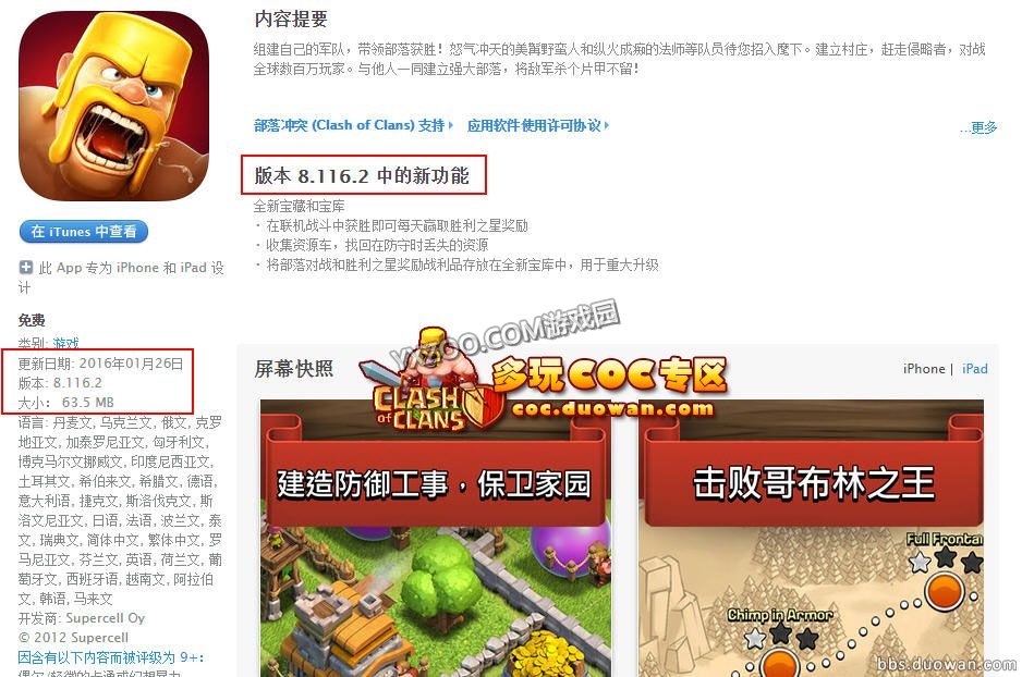 正文摘要:大家期待已久的部落衝突已經更新嘍~在今天的18點,那麼讓我們來了解下這次更新是哪些內容呢?一起來看看吧!在此等待的時間來看看吧! 1月26日下午18點更新: 《部落衝突》1月版本更新,確認今天(1月26日)推出!具體更新內容就是下面預告過五點(天鷹火炮對石頭人3倍傷、6本7本各增加一個防空、寶庫、每日之星、資源車),此外,還修正了一些BUG,具體如下: 中文版: 1、修復了小骷髏卡牆的問題,特別是當它們去追野豬的時候。 2、黑水法術捐贈到部落城堡的問題,現在僅能捐贈一個法術。 3、在一些特別的案例當中,玩家開始一項升級操作,玩家長時間空閒之後,遊戲顯示升級剩餘時間20+天的問題。 很明顯,7本配置3個5級防空,對於10龍無腦推平戰術,肯定會有影響,不管是閃防空的龍流,還是狂暴回血龍流。 寶庫 ‧部落城堡內將新增一個保護資源的空間:寶庫。 ‧寶庫可以保護部落戰戰利品和每日勝利之星獎勵。 ‧寶庫是存放資源最安全的地方。 ‧將從部落城堡信息介面移除戰爭金幣/聖水/暗黑重油容量顯示。 ‧寶庫容量取決於大本營等級和部落特權,但是不受部落城堡等級影響。 ‧部落特權中的"戰利品額外儲藏空間"將調整為"寶庫額外儲藏空間",對應的百分比將會下調。(別擔心,更新後所有等級的大本營對應的寶庫容量,將大於原來的戰利品儲藏空間) ‧部落城堡的外觀將有所變化,屋頂上的小資源庫將被移除。 勝利之星獎 在多人聯機遊戲模式中,累計取得5顆星,就可以獲得資源獎勵。 ‧聯賽級別越高,獎勵越多!‧每天都會重置一次勝利之星獎勵! ‧勝利之星獎勵將被存放到寶庫中,並受到保護。 ‧達到三級冠軍聯賽以上可獲得最多勝利之星獎勵。 資源車 ‧每次防守後,村莊內會出現一輛資源車。 ‧「收集」資源車可以獲取在防守中損失的部分資源。 ‧一次只會出現一輛資源車,請及時收集哦! ‧每次被攻擊後資源車出現在你村莊的位置是隨機的,裡面裝有20%的被掠奪資源。 ‧資源車已經出現的情況下,如果村莊再次被攻擊,資源車裡面的金幣、聖水和暗黑重油數量只會保留資源損失最多的那次。 ‧村莊的資源存儲器已滿時,無法收集資源車內的資源。 |