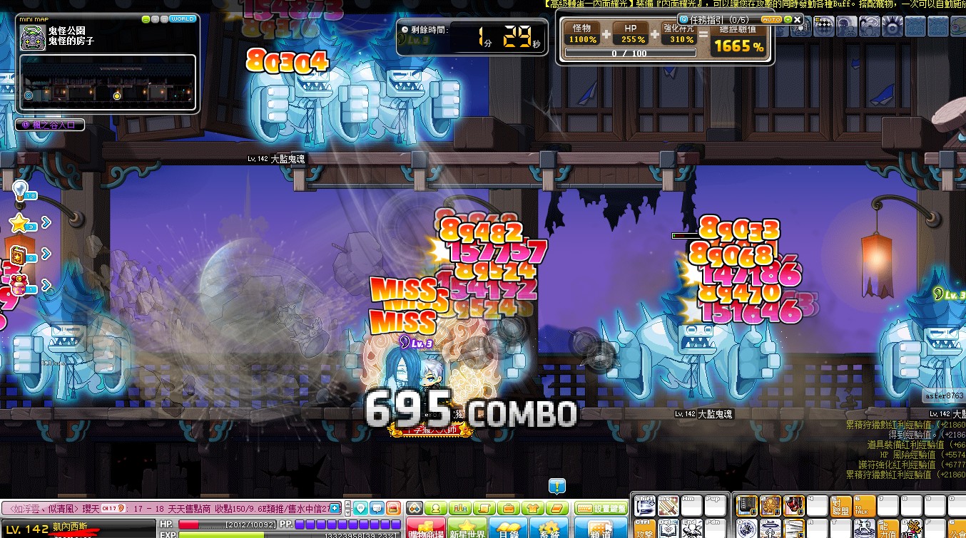 replyreload += ',' + 2017866; 一場十分鐘 等級再高致少會升一等 如果你有燃燒會更快 怪物會隨著等級增加 一天只能進五次 記得壓寫 我們可以看到 我141等 一隻怪物經驗值=2186+5574+6777+21860 =36397 這還不是極