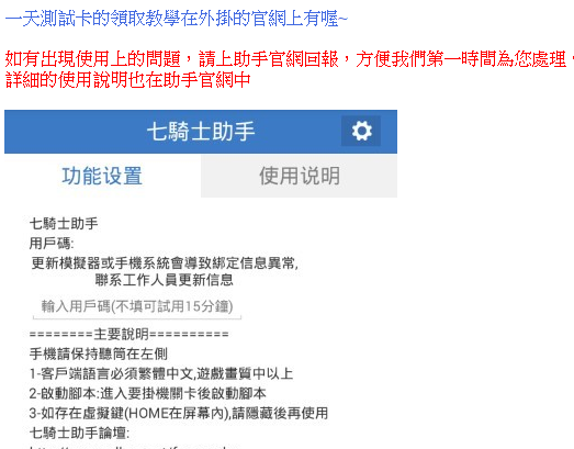 replyreload += ',' + 2019207; 注: 1、手機使用助手輔助需要root,模擬器可直接使用。(模擬器都自帶root) 2、輔助僅支援國際服和亞服,遊戲客戶端必須使用繁體中文。 3、每次開啟輔助均可試用20分鐘。 功能介紹