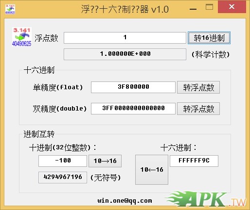 replyreload += ',' + 2019566;由於很多人提問 0000803F 到底是甚麼意思 在此發一篇教學 下載>>浮點數轉換工具 首先 1倍 0000803F 就在浮點數那邊打1 轉16進制 得到的 float=3F800000 如何換算呢 3F800000=00008
