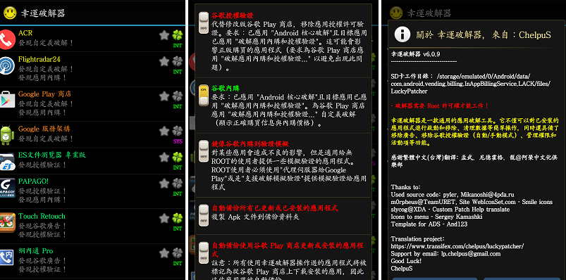 正文摘要:replyreload += ',' + 2020869; 【軟體語言】 繁體 其他 【軟體名稱】 Lucky Patcher 【軟體版本】 v6.0.9_ + Mod 【軟體大小】 5.53MB 【更新日期】 2016-03-20 【使用權限】 免費版 【系統支援】 Android 2.0+ (需ROOT) 【軟體詳情】 幸運的補丁是一個偉大的Android的工具來刪除廣告,修改權限,繞過溢價應用許可證驗證等。 用幸運補丁的所有功能,你需要一個植根設備。 雖然穩定,幸運補丁的功能,不能100%保證的 。所以你完全負責任地使用這個應用程序的 任何情況下Netbew將負責任何問題造成的設備(重啟循環,不穩定的系統,等等...)。 【版本更新】 ·所有版本修改谷歌更新仿真代碼補丁; ·更新自定義補丁; ·更新翻譯; 【手機截圖】 所有站內附件皆會附上安全掃描報告請會員查看純淨度百分比後判斷使用(adsbygoogle = window.adsbygoogle || []).push({});相關檔案須知:取得檔案前,請先詳細閱讀文章內容避免不必要錯誤與誤會發生。也可多參考文章討論樓層內容了解附件檔案相關討論資訊。 【此文章部分內容隱藏中】 解除隱藏說明教學點擊下方 繼續閱讀文章 後請仔細觀看文章內容 並依照指示進行下一步最後完成解除隱藏後系統會回到此文章自動顯示隱藏內容~繼續閱讀 replyreload += ',' + 2020869; |