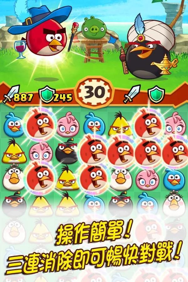 replyreload += ',' + 2030148; 三消對戰十分簡單!只要縱向或橫向湊齊三隻同樣的小鳥即可,一個接一個連續消除來攻擊對方吧!與全世界的玩家實時對戰!不僅如此,稀有角色和巨豬怪也將陸續登場!和憤怒的小鳥一起來