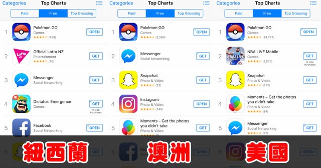 【世界級人氣】《Pokemon GO》澳、紐、美三地Appstore免費榜冠軍