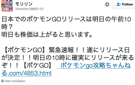 最新日本Pokemon GO 日本推特消息指出,即將於 港台 7/15 明天早上 9 點 開放 Pokemon GO 目前消息來源如圖: 原始連結 圖中10點為日本時間 以官網原本說法,亞洲應該是在同一區,所以期待日本開放的同時,