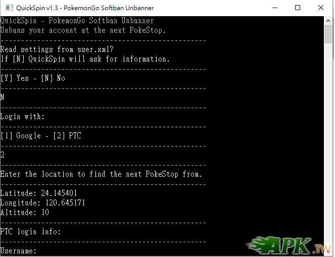 replyreload += ',' + 2048536; 那麼如果想要提前解封的話 可以先將目前的BOT全部關閉 然後用自己的手機登入被封的帳號 登入後會見到有POKESTOP但仍然是被SOFTBAN 然後再用QUICKSPIN解SOFTBAN就可以再掛了 方法