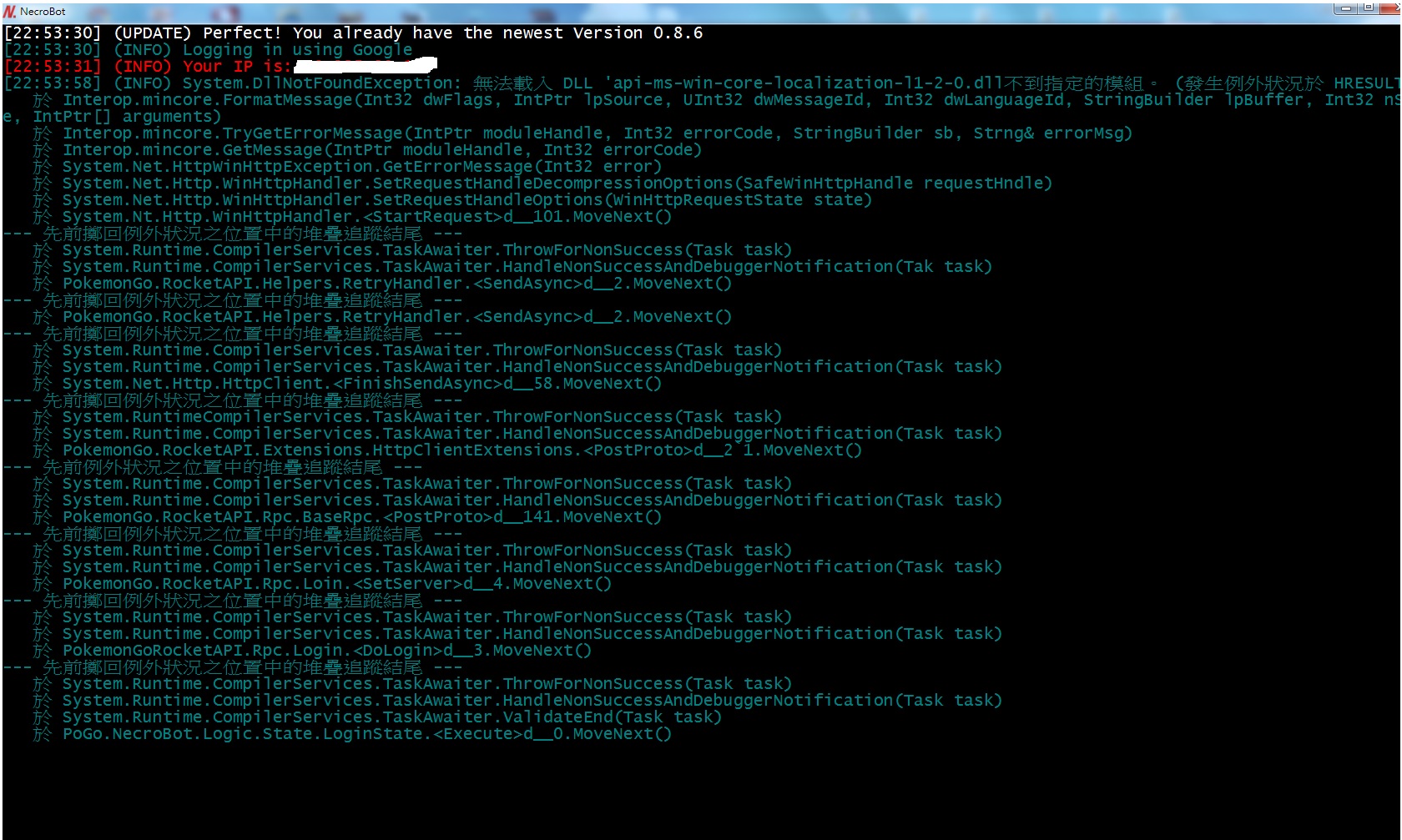 請問我的NecroBot V0.8.6怎麼會變成這樣... 不管怎麼改都還是一樣不能使用... 有其他人也遇到這情況嗎...? 請問有什麼辦法可以解決的...